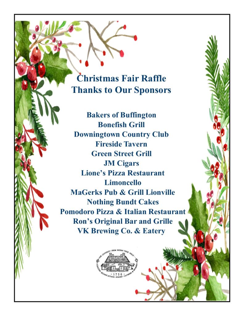 News & Events The Uwchlan Conservation Trust is grateful for the businesses that donated to our raffle held at the Uwchlan Garden Club Christmas Fair on December 6, 2025. The Uwchlan Meeting House welcomed hundreds of shoppers over a six hour period.